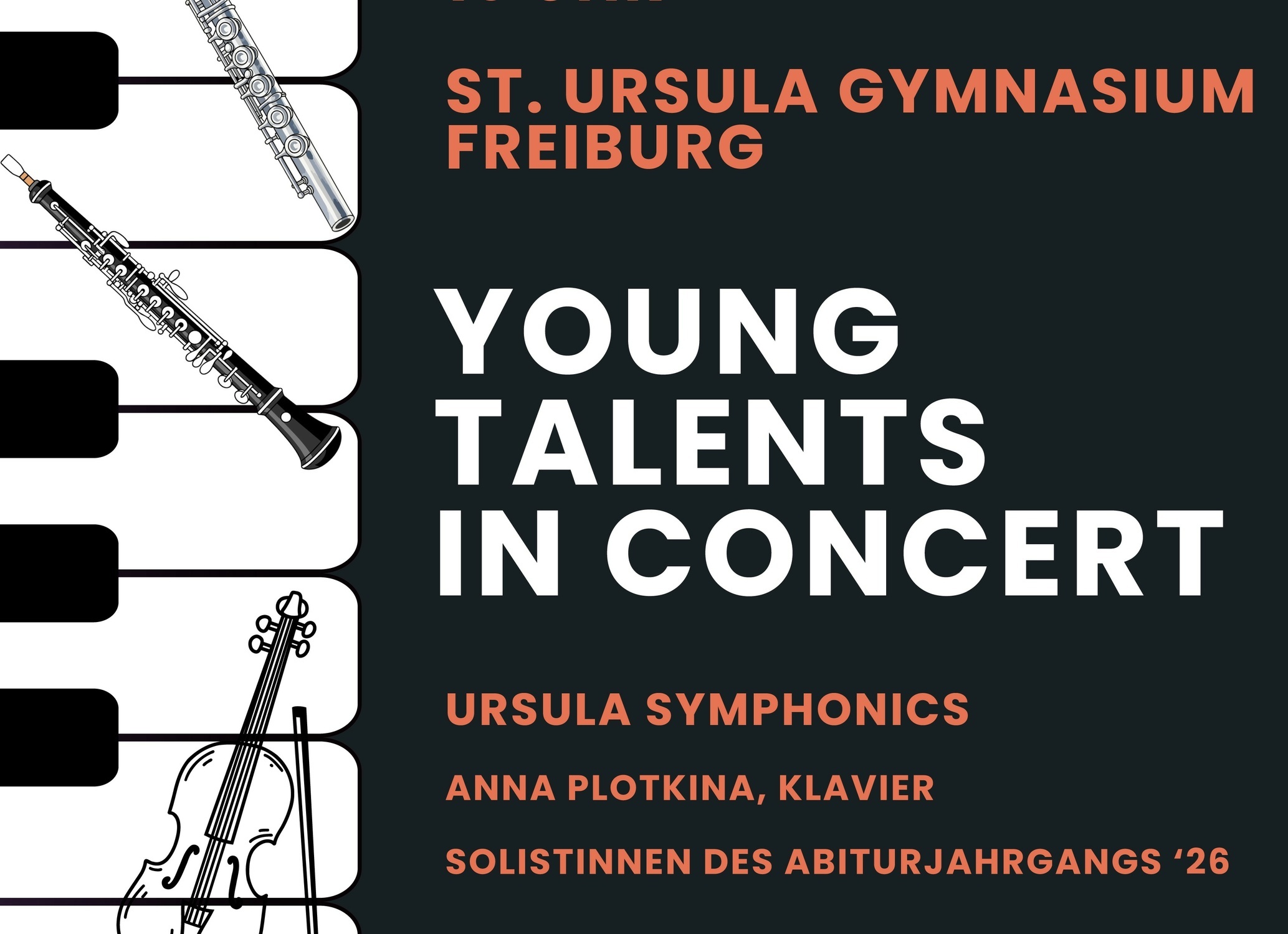 Ein besonderes Merkmal des Abends war, dass die Soloparts vollständig von Schülerinnen der Ursula Symphonics übernommen wurden (Pauline Burger, Sonja Himmelseher und Selina Wöhrle (Violine), Sarah Bitzenhofer und Anika Baumgartner (Oboe), Jule Beitz (Klarinette), Sabeth Salzmann (Flöte)). Mit großem Engagement und beeindruckender Sicherheit meisterten sie ihre Auftritte und wurden vom Publikum mit begeistertem Applaus belohnt.